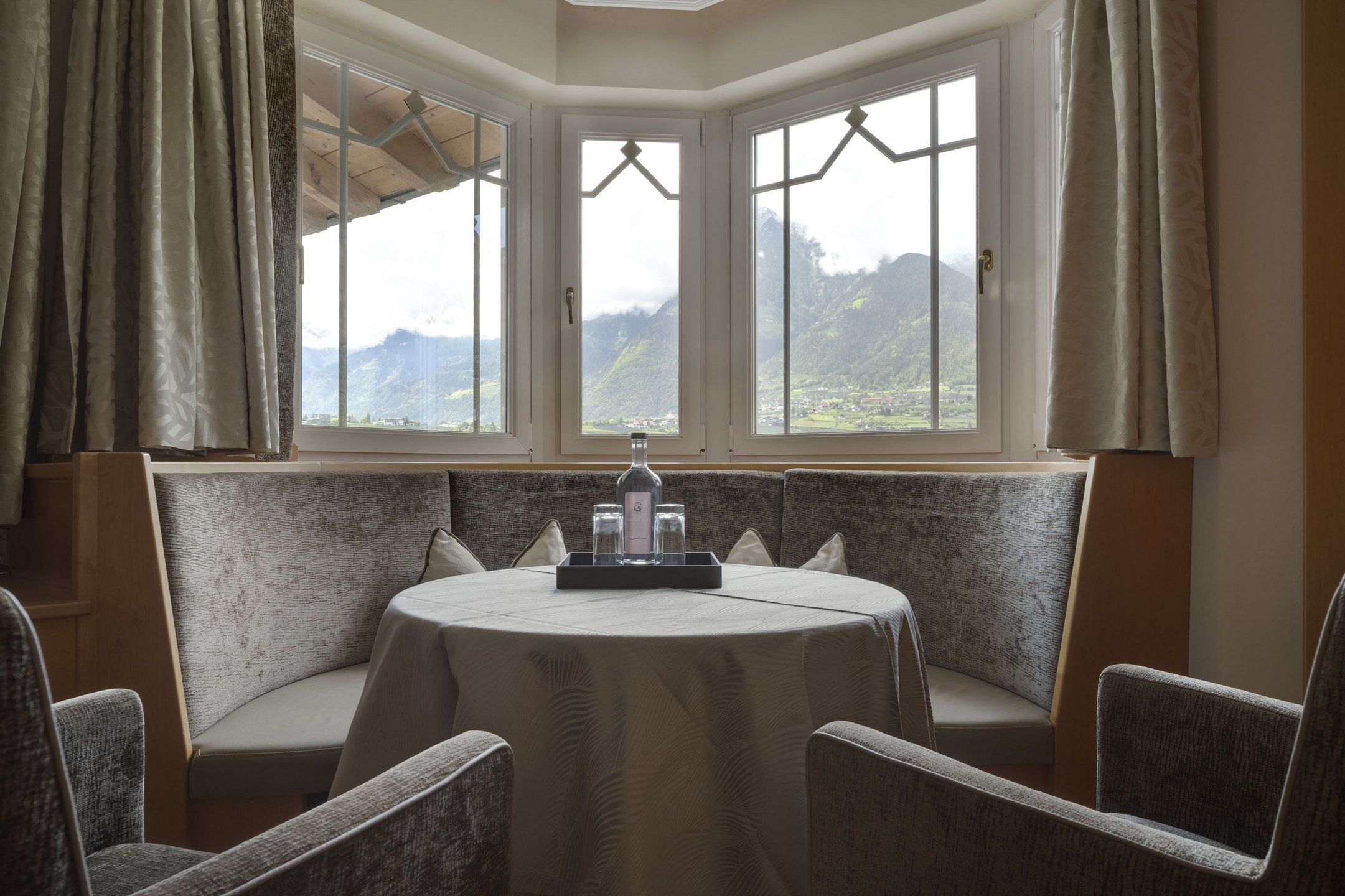 Tutte le nostre camere e suite offrono scorci della bellezza di Merano e dintorni. Lo sguardo abbraccia la città termale di Merano, incastonata tra meleti e palme, oppure sale verso le vette imponenti del Gruppo di Tessa. Al mattino, la prima luce avvolge la città di tonalità delicate, mentre la natura si risveglia lentamente. Durante il giorno potete osservare la vita cittadina o godervi la quiete delle montagne circostanti. La sera, il cielo sopra le cime si tinge di colori caldi, invitando a un momento di contemplazione.