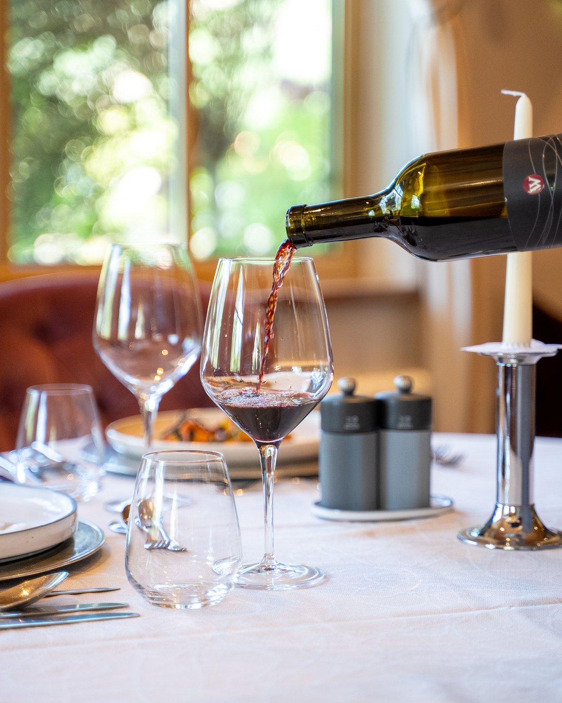 La proposta del ristorante non prevede una carta fissa. Proponiamo ciò che si addice di più al momento – all’atmosfera, alla stagione, al vostro menu. Nascono così incontri che non si possono programmare. E magari scoprirete che il vostro nuovo vino preferito proviene proprio dal Burgraviato – la regione che dà il nome al nostro hotel.