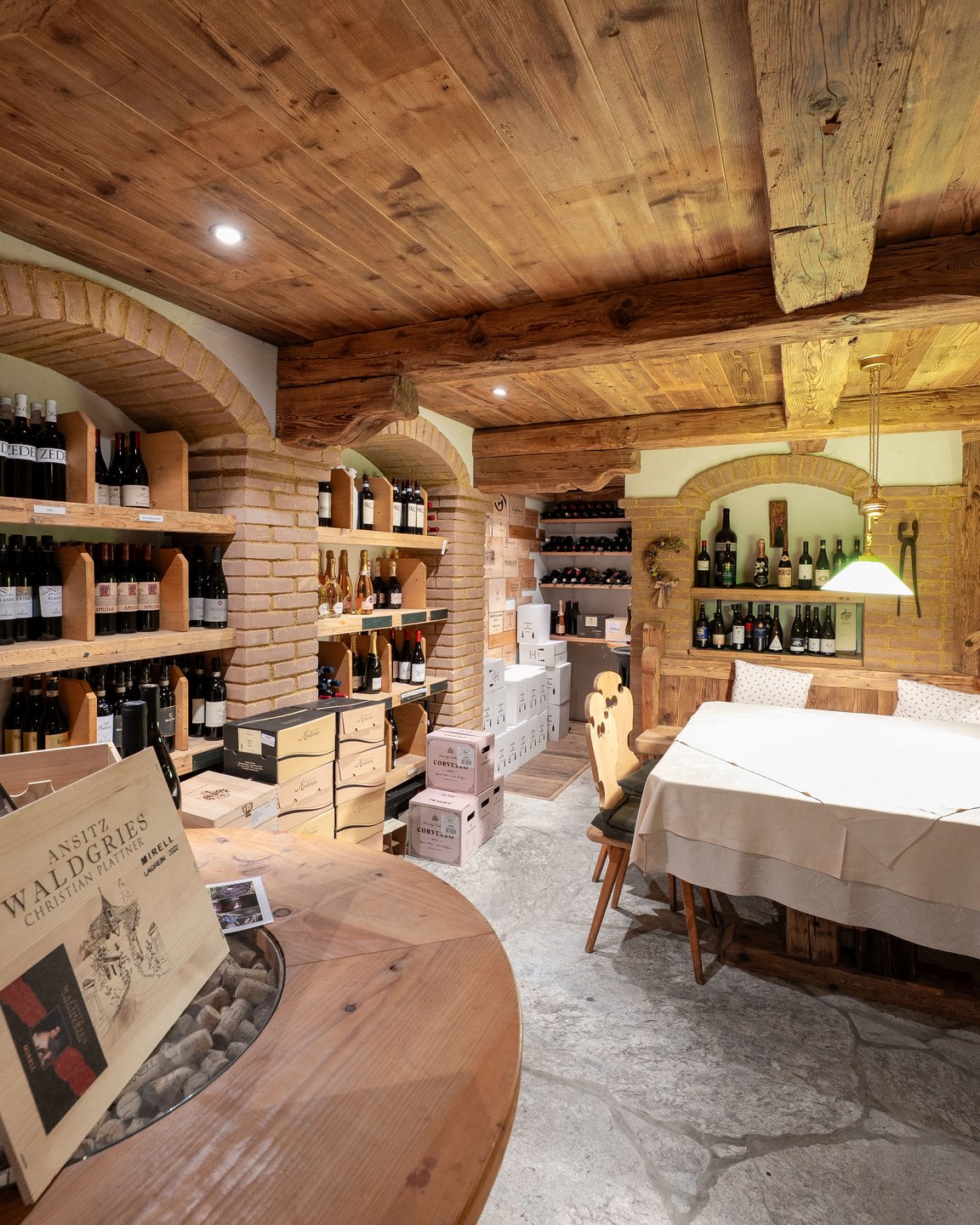 Nella cantina del Burggräflerhof, il vostro hotel con spa e degustazione di vini, custodiamo etichette che abbiamo raccolto e imparato ad apprezzare negli anni. Molte provengono dall’Alto Adige, altre da regioni d’Italia a noi particolarmente care. Alcune le abbiamo scoperte in viaggio, altre per caso. Ogni vino ha la sua storia, ed è proprio questo a rendere unico questo luogo. Se desiderate godervi una degustazione di vini e un pernottamento in Alto Adige, qui trovate l’ambiente giusto.