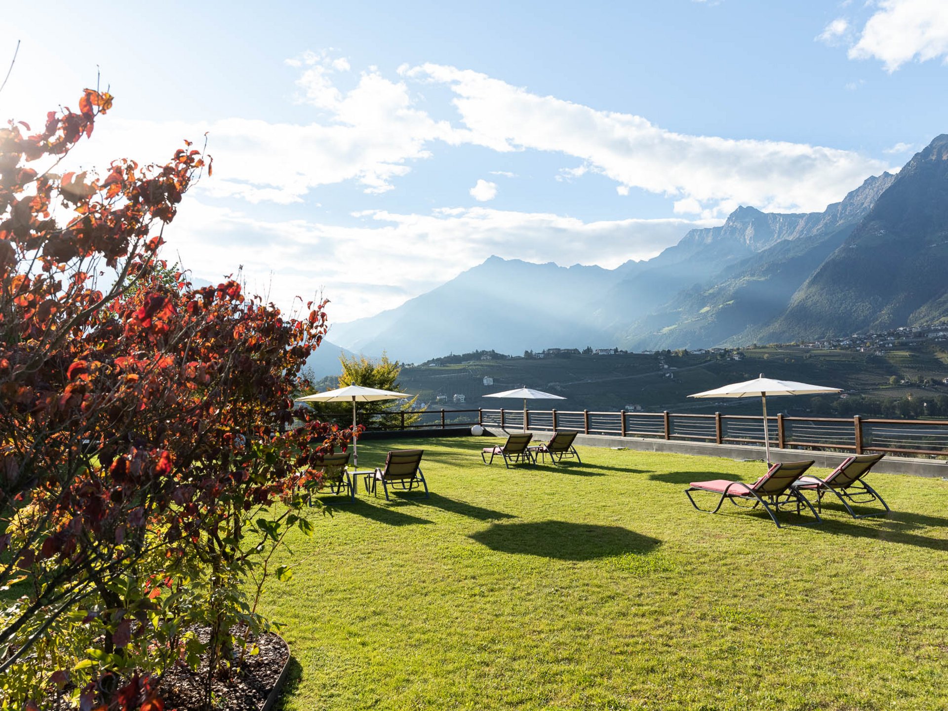 Avete mai iniziato la giornata ammirando la vista sulla città termale e sulle montagne circostanti dal balcone della vostra camera? Al Burggräflerhof, il vostro hotel con giardino panoramico in Alto Adige, potrete godere di una vista sui pittoreschi meleti, sull’imponente Gruppo di Tessa e sul giardino dell’hotel, perfettamente curato.