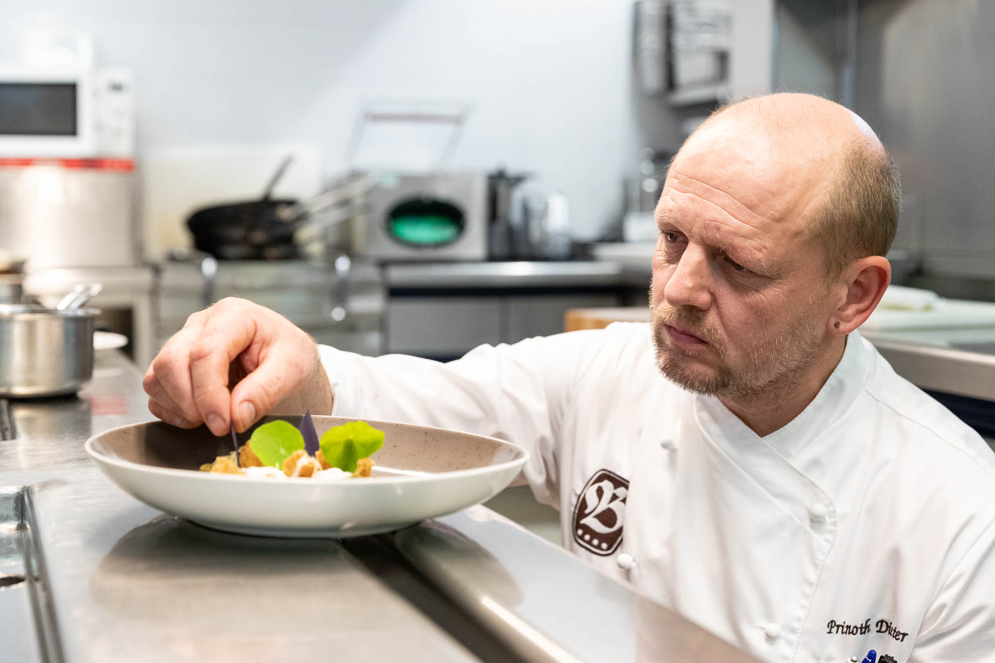 Il nostro rinomato chef Dieter Prinoth fa parte dello staff del nostro hotel a Maia Alta, a Merano, da oltre dieci anni. Le sue competenze, il suo impegno, la sua creatività e, naturalmente, il team cucina che lavora con lui sono il segreto dei nostri squisitissimi piatti.